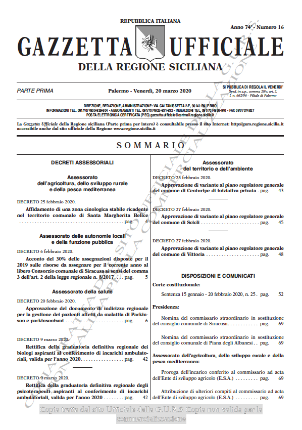 Pubblicazione GURS n°21 del 10/04/20